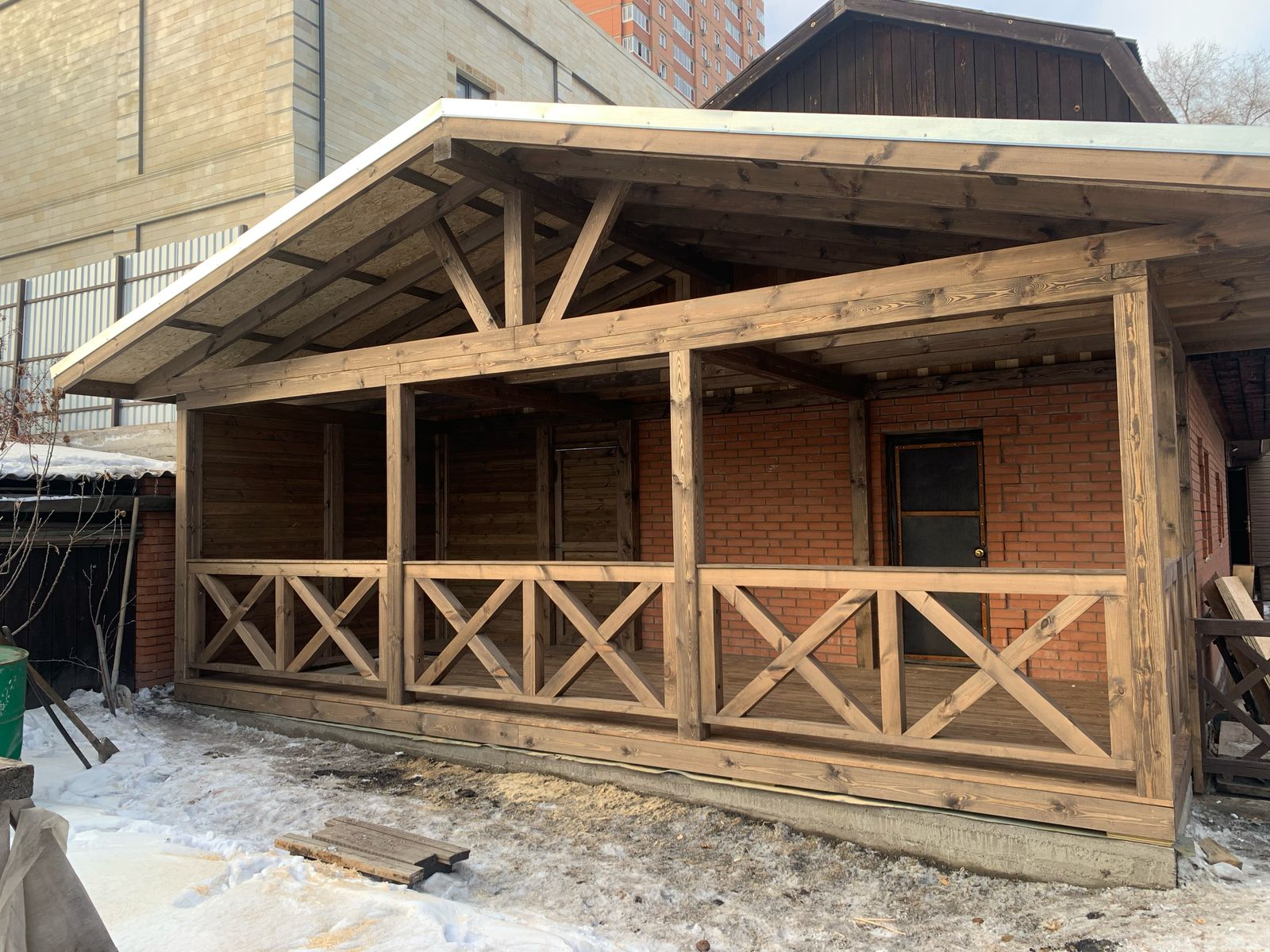 Компания СДК проектирует и возводит деревянные террасы, которые гармонично расширяют жилое пространство вашего дома или бани. Мы создаем эстетичные и долговечные площадки для отдыха — от открытых летних настилов до закрытых веранд с остеклением, используя материалы, устойчивые к сибирскому климату. Специалисты СДК обеспечивают полный цикл работ, чтобы вы получили качественную пристройку, идеально подходящую для комфортного загородного отдыха в Красноярске.